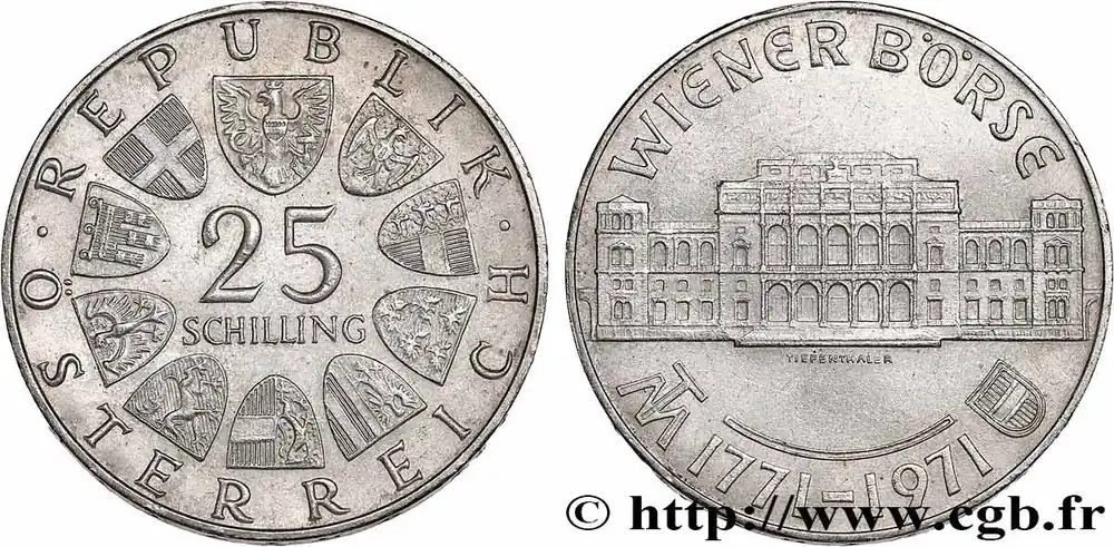 AUTRICHE 25 Schilling 200e anniversaire de la Bourse de Vienne 1971 fwo_725792 Monde Promotion Saisonnière