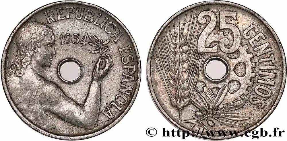 Offre Exclusive ESPAGNE 25 Centimos monnayage républicain 1934 fwo_751036 Monde