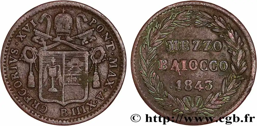 Must-Have VATICAN ET ÉTATS PONTIFICAUX 1/2 Baiocco Grégoire XVI an XIII 1843 Bologne fwo_751122 Monde