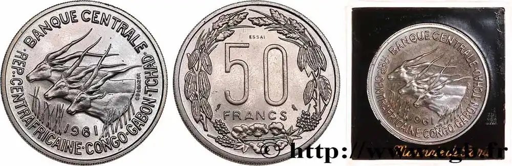 Vente Directe ÉTATS DE L’AFRIQUE ÉQUATORIALE Essai de 50 Francs antilopes 1961 fwo_752267 Monde