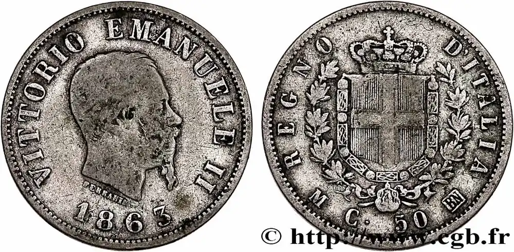 Retour Gratuit ITALIE 50 Centesimi Victor Emmanuel II type à l’écu 1863 Milan fwo_748874 Monde