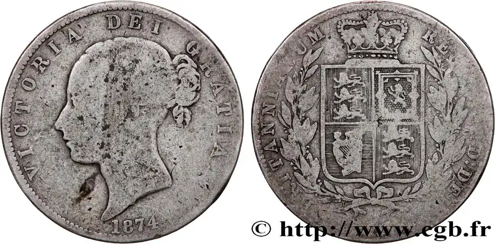 ROYAUME-UNI 1/2 Crown Victoria tête jeune 1874 fwo_758582 Monde Top Qualité