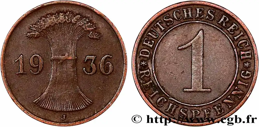 ALLEMAGNE 1 Reichspfennig 1936 Hambourg fwo_760959 Monde Solde
