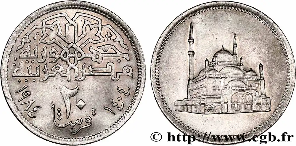 Achat Immédiat ÉGYPTE 20 Piastres mosquée Mohamed-Ali du Caire AH 1404 1984 fwo_761168 Monde