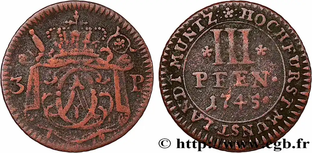 ALLEMAGNE – MUNSTER 3 Pfenning Clément-Auguste Ier de Bavière 1745 fwo_761202 Monde Offre Exclusive