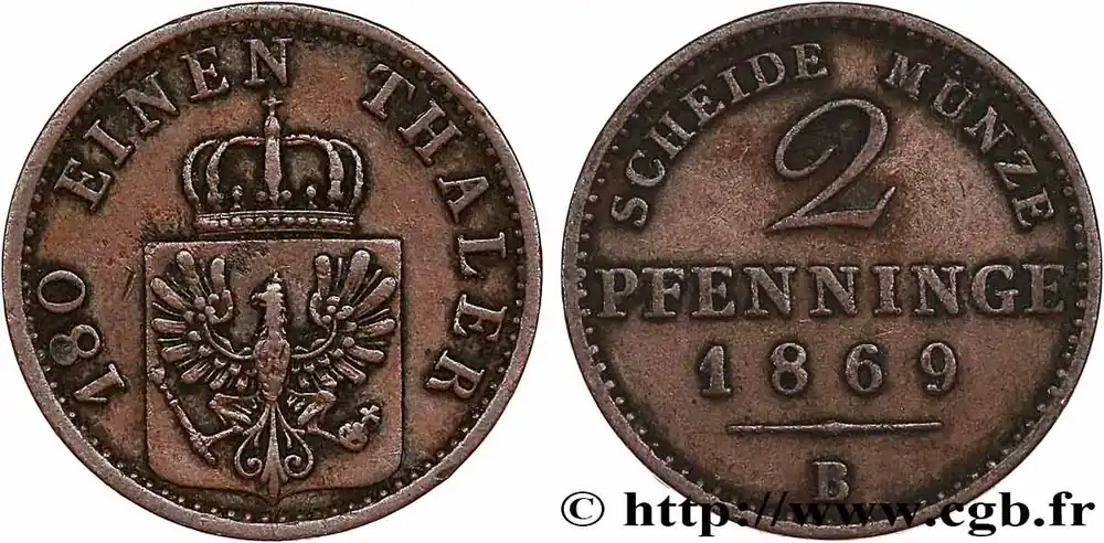 ALLEMAGNE – PRUSSE 2 Pfenninge Royaume de Prusse 1869 Hanovre – B fwo_761310 Monde Promotion