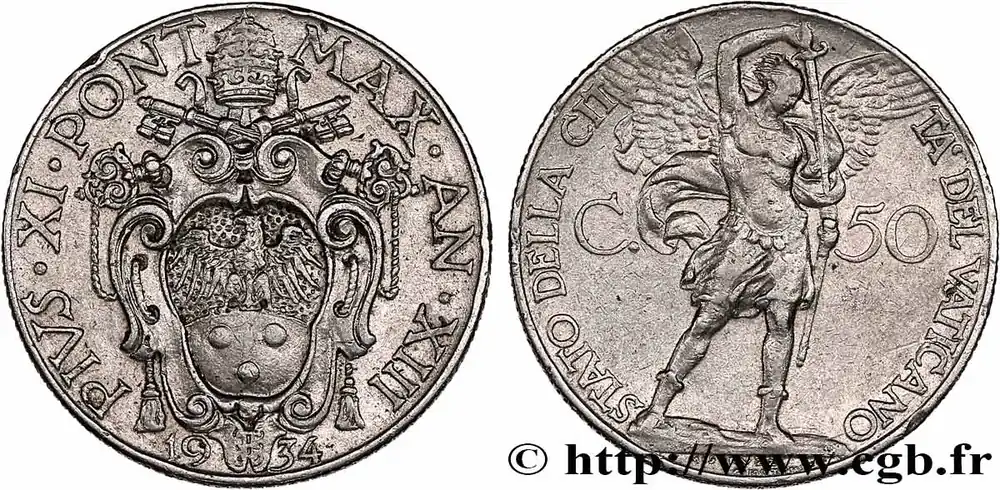 Achat Immédiat VATICAN ET ÉTATS PONTIFICAUX 50 Centesimi Pie XI an XIII 1934 Rome fwo_761369 Monde