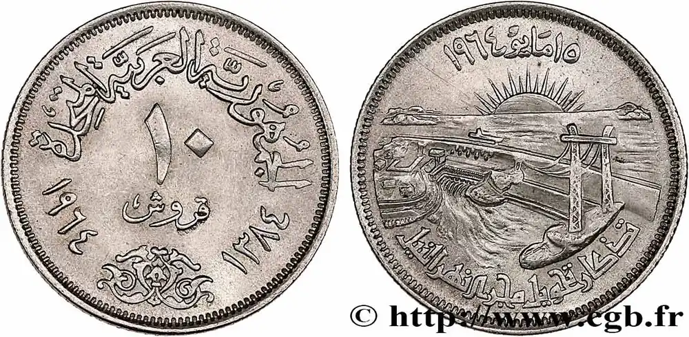 ÉGYPTE 10 Piastres AH1384 barrage d’Assouan 1964 fwo_761732 Monde Nouveauté