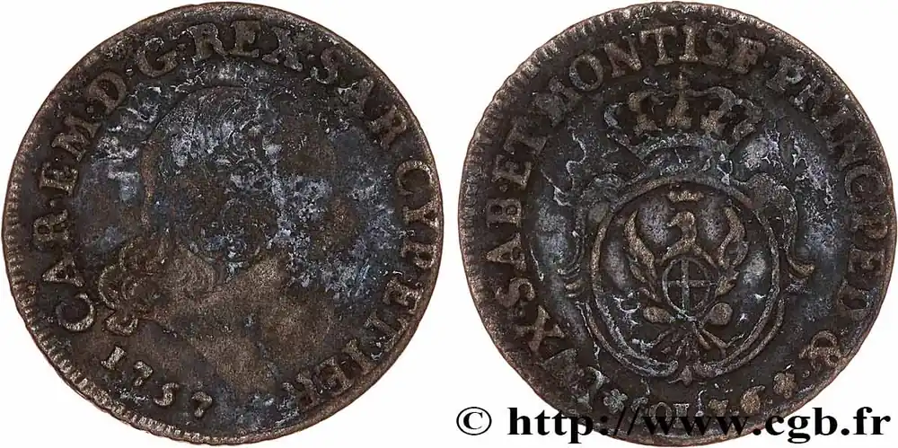 SAVOIE – DUCHÉ DE SAVOIE – CHARLES-EMMANUEL III 7 sols de demi (soldi 7.6) 1757 Turin fwo_759347 Monde Livraison Express