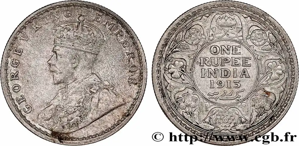 Satisfait Ou Remboursé INDES BRITANNIQUES 1 Roupie Georges V 1913 Bombay fwo_760128 Monde