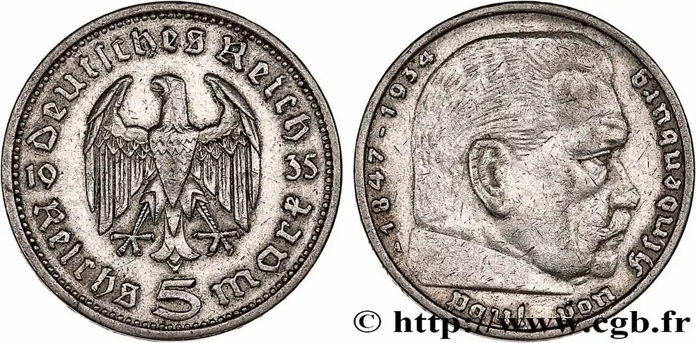 Seulement Aujourd’hui ALLEMAGNE 5 Reichsmark Maréchal Paul von Hindenburg 1935 Berlin fwo_760888 Monde