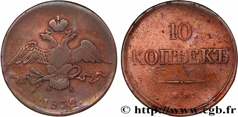 RUSSIE 10 Kopecks aigle bicéphale 1832 Ekaterinbourg fwo_764297 Monde Garantie Incluse