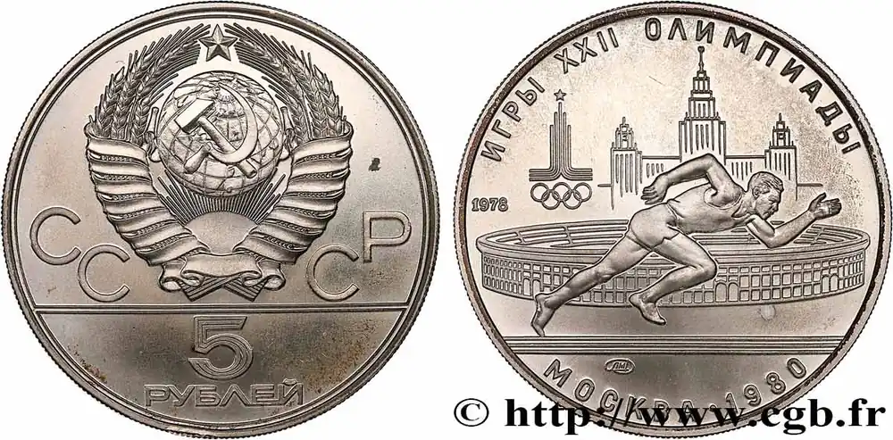RUSSIE – URSS 5 Roubles Proof Jeux Olympiques de Moscou 1980, coureur 1978 Léningrad fwo_764328 Monde Meilleure Qualité