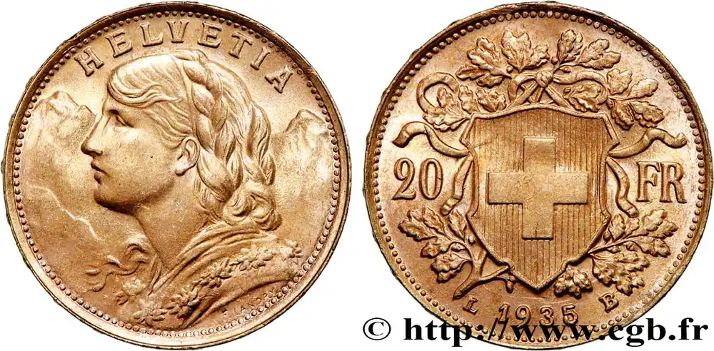 Commande En Gros OR, PALLADIUM ET PLATINE INVESTISSEMENT 20 Francs « Vreneli » 1935 Berne fwo_735649 Monde
