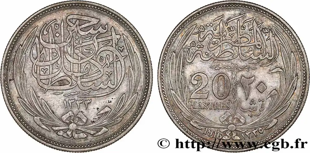 ÉGYPTE 20 Piastres frappe au nom de Hussein Kamal Pacha AH1333 1916 Paris fwo_764406 Monde Bon Marché