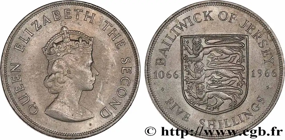 JERSEY 5 Shillings 900e anniversaire de la Bataille d’Hastings 1966 fwo_760731 Monde Produit De Marque