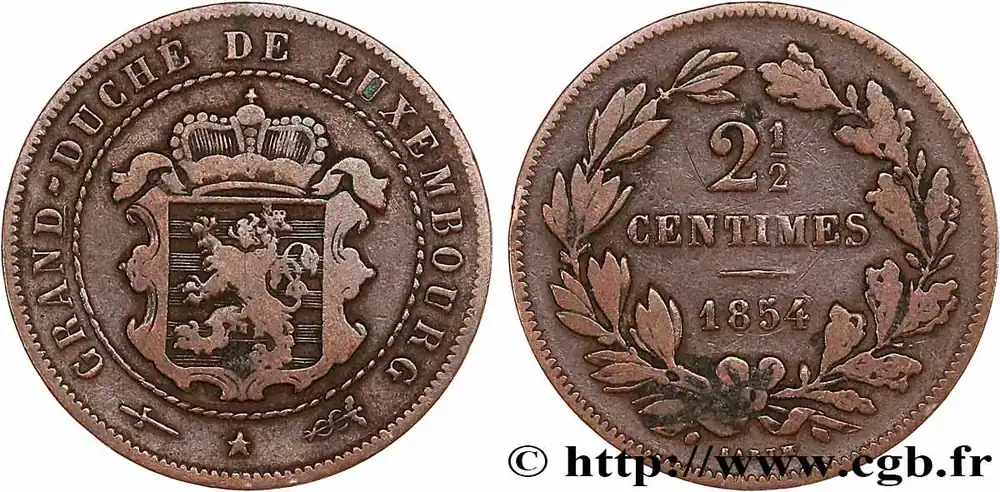 LUXEMBOURG 2 1/2 Centimes écu couronné 1854 Utrecht fwo_764442 Monde Haute Qualité