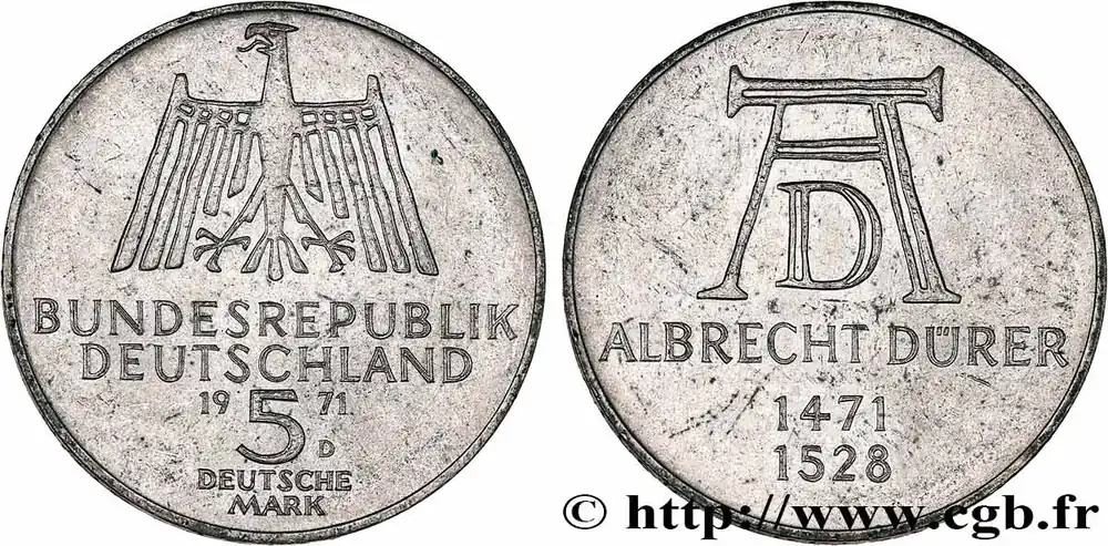 Meilleur Prix ALLEMAGNE 5 Mark Albrecht Dürer 1971 Munich fwo_764452 Monde