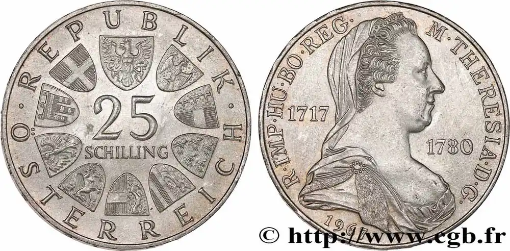 Marque AUTRICHE 25 Schilling 250e anniversaire de l’impératrice Marie-Thérèse 1967 fwo_764469 Monde
