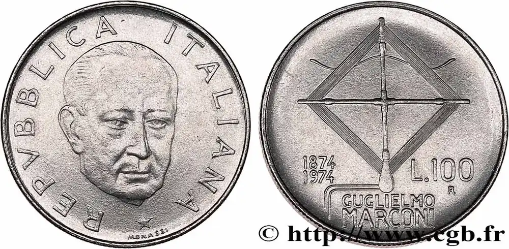 ITALIE 100 Lire 100e anniversaire de la naissance de Guglielmo Marconi 1974 Rome – R fwo_726982 Monde Meilleure Qualité