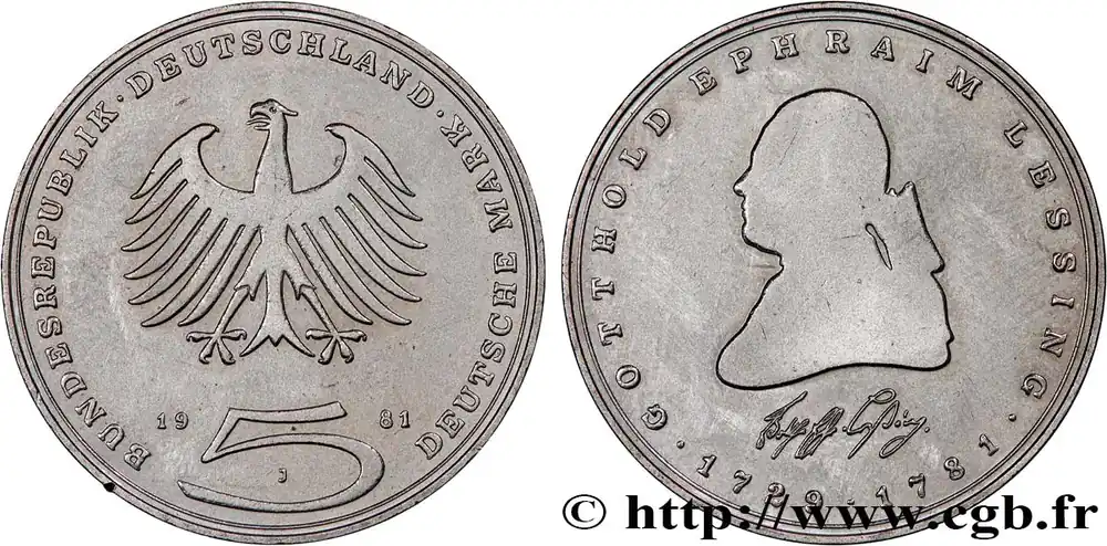 Jusqu’à Épuisement Des Stocks ALLEMAGNE 5 Mark aigle Gotthold Ephraim Lessing 1981 Hambourg – J fwo_756803 Monde