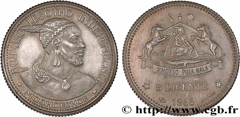 LESOTHO 5 Licente (Lisente) roi Moshoeshoe 1966 fwo_764879 Monde Promotion