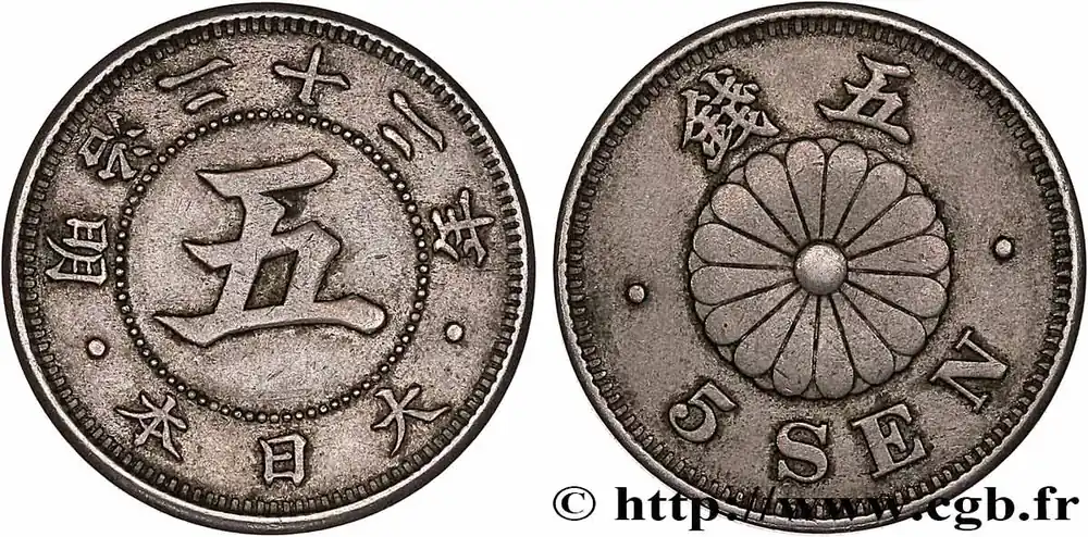 JAPON 5 Sen an 22 ère Meiji (1889) fwo_764915 Monde Original