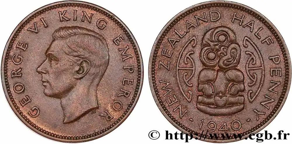 NOUVELLE-ZÉLANDE 1/2 Penny George VI 1940 fwo_764495 Monde Vente Directe