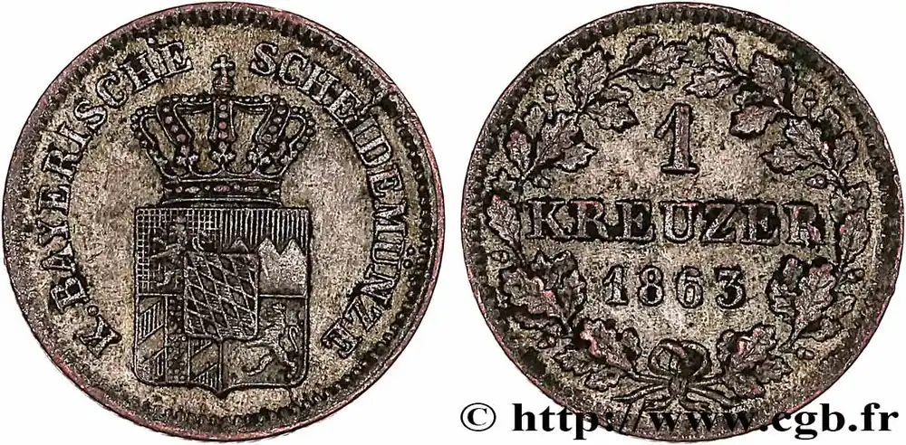 Meilleure Qualité ALLEMAGNE – BAVIÈRE 1 Kreuzer Maximilien II 1863 fwo_764504 Monde