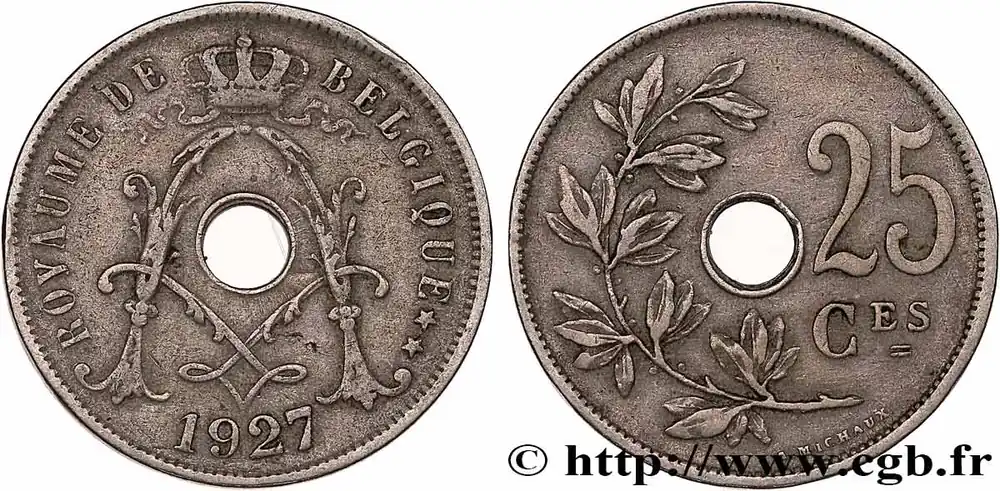 Marque BELGIQUE 25 Centimes Albert Ier 1927 fwo_764578 Monde