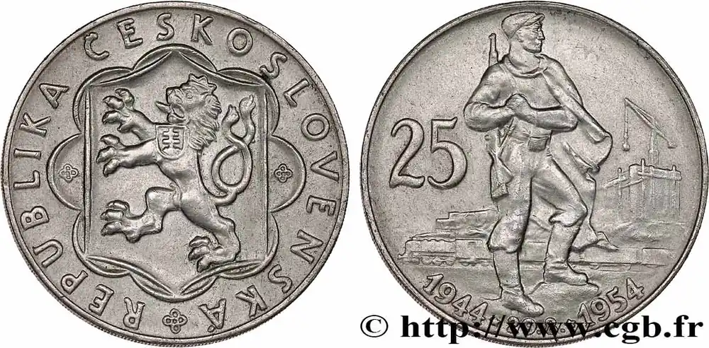 Livraison Mondiale TCHÉCOSLOVAQUIE 25 Korun 10e anniversaire du soulèvement slovaque 1954 fwo_764649 Monde