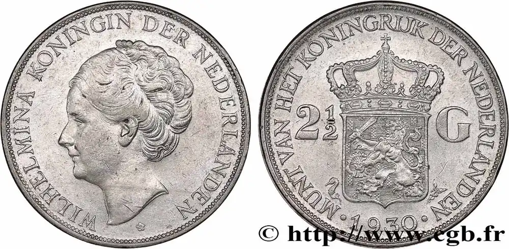 Meilleure Qualité PAYS-BAS 2 1/2 Gulden Wilhelmina 1930 fwo_764928 Monde