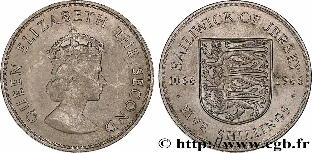 JERSEY 5 Shillings 900e anniversaire de la Bataille d’Hastings 1966 fwo_760743 Monde Seulement Aujourd’hui