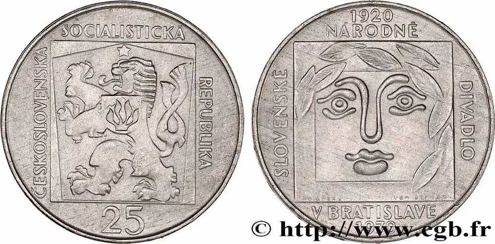 Meilleur Prix TCHÉCOSLOVAQUIE 25 Korun 50e anniversaire du Théâtre National Slovaque 1970 fwo_764771 Monde