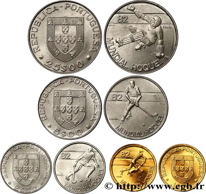Meilleure Vente PORTUGAL Lot 1, 2,5 , 5 et 25 Escudos Mondial de Rink Hockey : emblème / hockey 1982 Lisbonne fwo_753812 Monde