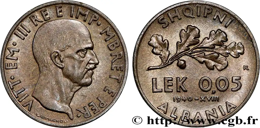 Garantie Incluse ALBANIE 0,05 Lek Victor-Emmanuel III 1940 Rome fwo_764870 Monde