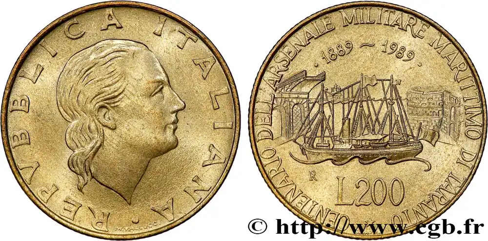 ITALIE 200 Lire Centenaire de l’arsenal militaire maritime de Tarente 1989 Rome fwo_772113 Monde Offre Exclusive