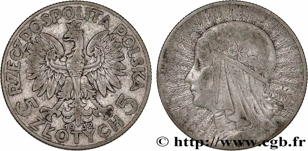 POLOGNE 5 Zlotych aigle / reine Jadwiga 1932 Londres fwo_777211 Monde Premium