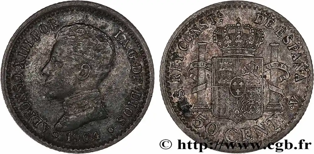 Édition Limitée ESPAGNE 50 Centimos Alphonse XIII S.M.-.V. 1904 Madrid fwo_776613 Monde