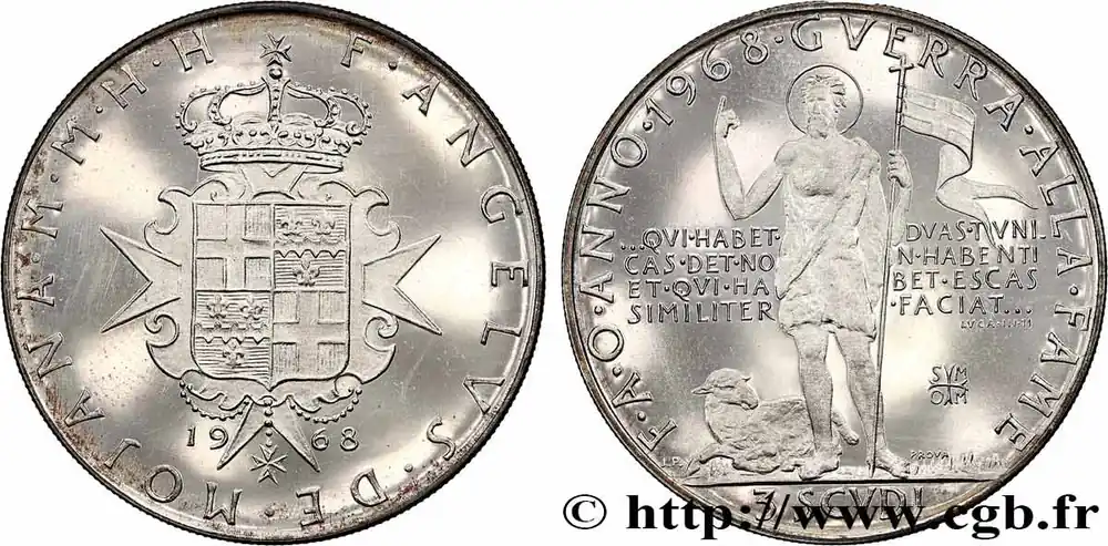 ORDRE SOUVERAIN DE MALTE 3 Scudi Proof Frà Angelus de Mojana 1968 S.M.O.M., Rome fwo_781486 Monde Fait Main