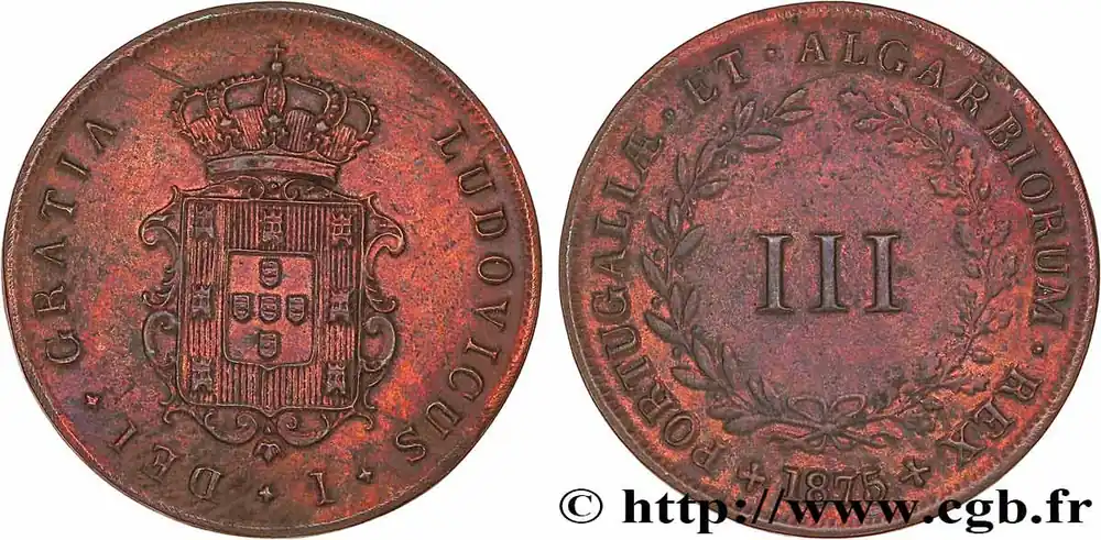 PORTUGAL – ROYAUME DU PORTUGAL – LOUIS Ier 3 Réis 1875 fwo_778802 Monde Affaire À Saisir