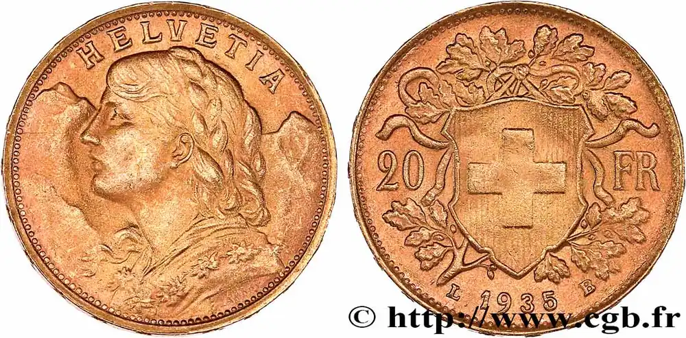 OR, PALLADIUM ET PLATINE INVESTISSEMENT 20 Francs « Vreneli » 1935 Berne fwo_765342 Monde Commande En Gros