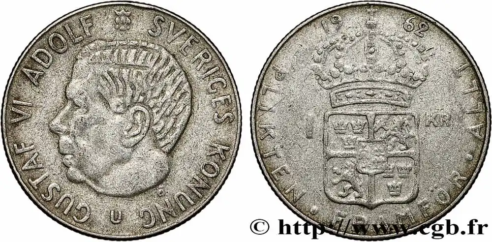 Pas Cher SUÈDE 1 Krona Gustave VI 1962 fwo_784886 Monde