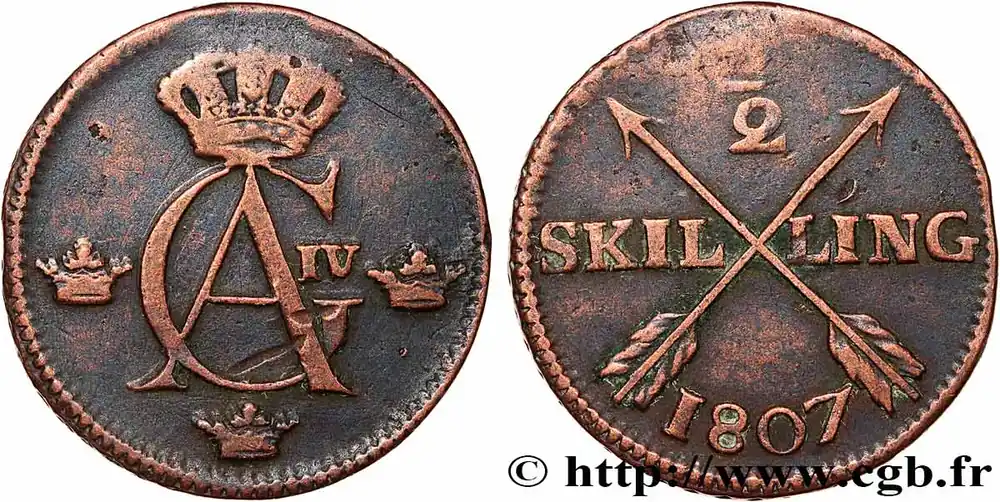 Populaire SUÈDE 1/2 Skilling Gustave IV Adolphe 1807 fwo_786277 Monde