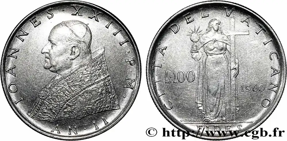 VATICAN ET ÉTATS PONTIFICAUX 100 Lire Jean XXIII an II / Fides tenant la croix 1960 Rome fwo_777357 Monde Offre Spéciale