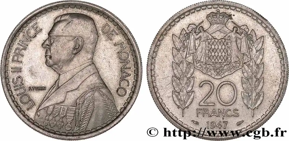 Fait Main MONACO 20 Francs prince Louis II 1947 Paris fwo_777077 Monde