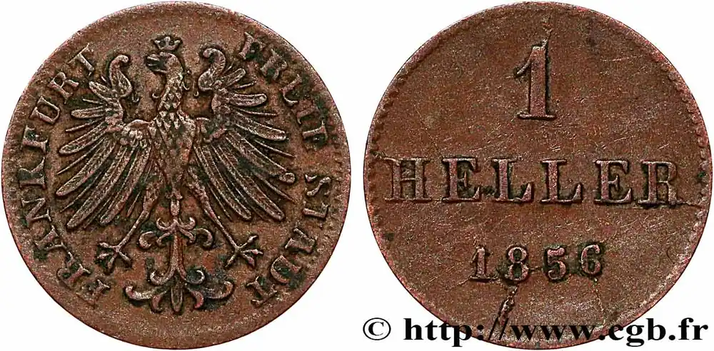Fait Main ALLEMAGNE – VILLE LIBRE DE FRANCFORT 1 Heller ville libre de Francfort aigle 1856 fwo_786110 Monde