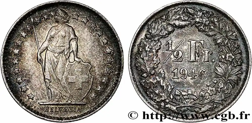 Exclusif SUISSE 1/2 Franc Helvetia 1946 Berne fwo_786260 Monde