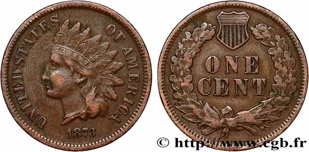 ÉTATS-UNIS D’AMÉRIQUE 1 Cent tête d’indien, 3e type variété 3 ouvert 1873 Philadelphie fwo_786452 Monde Meilleure Vente
