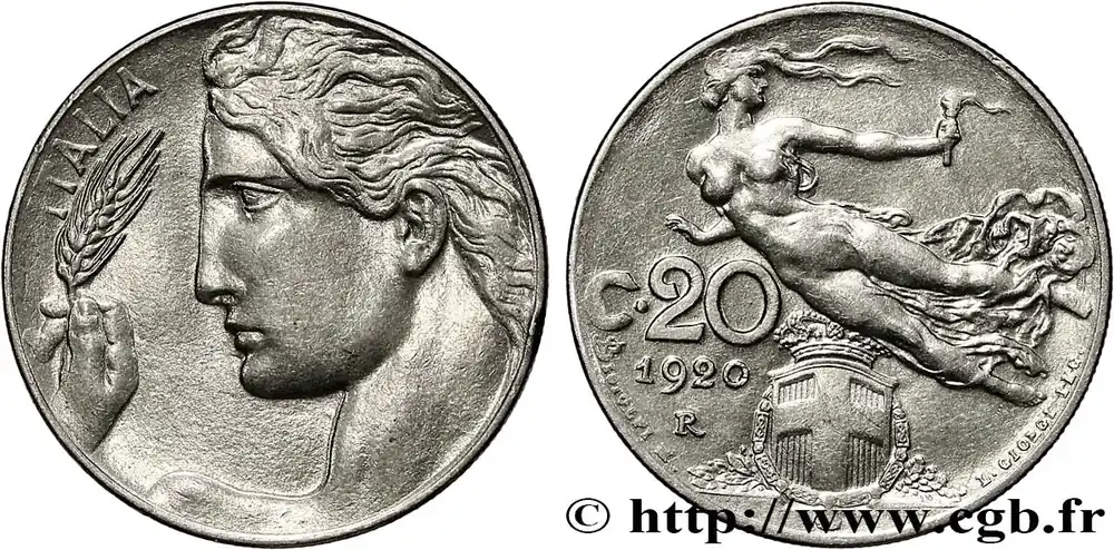 ITALIE 20 Centesimi allégorie de la Liberté 1920 Rome fwo_781307 Monde Jusqu’à Épuisement Des Stocks